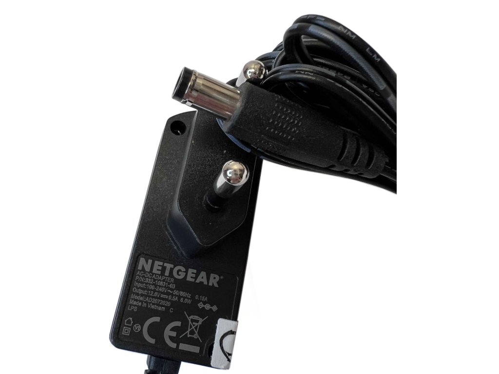 Napájecí zdroj pro zařízení s výstupem 12 V / 0,5 A (6 W). Spolehlivě napájí routery, access pointy a další kompatibilní zařízení. Má standardní kulatý DC konektor 5,4 mm x 1,9 mm x 9,8 mm, střed kladný (+).