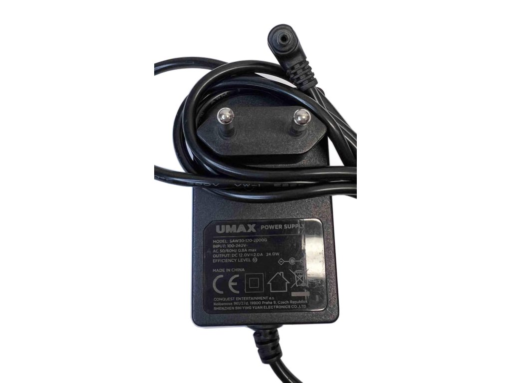 Před zakoupením si prosím ověřte, že vaše zařízení vyžaduje napájení 12 V / 2 A a že rozměry konektoru a polarita odpovídají tomuto adaptéru.