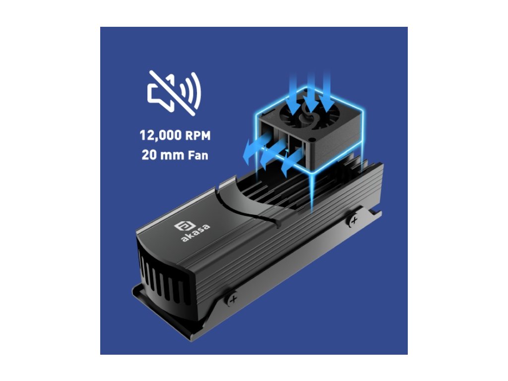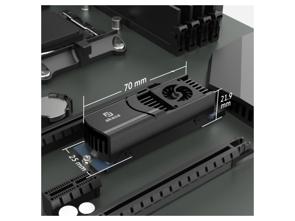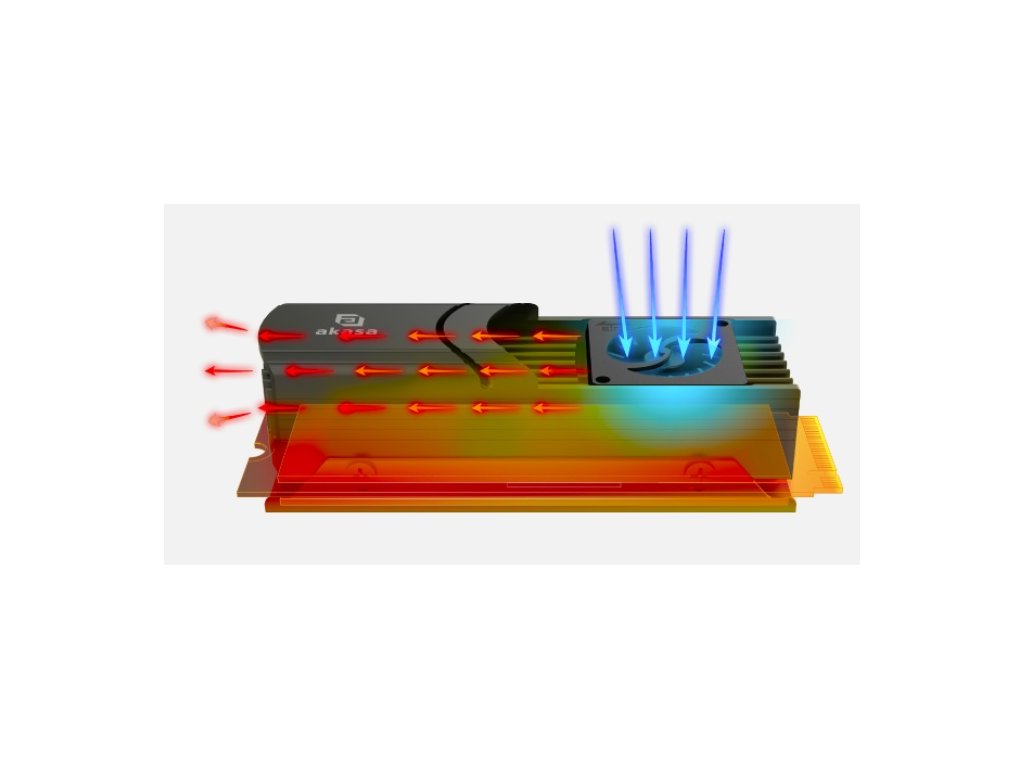Aktivní chladič AKASA Gecko Pro LX je určen pro použití s SSD M.2 (NVMe PCIe 5.0) Tělo chladiče je vyrobené z kvalitního hliníku a o optimální chlazení se stará tichý, ale výkonný ventilátor s rychlostí až 12 000 otáček za minutu a bočním odvodem horkého vzduchu. Součástí chladiče jsou i dvě podložky s vynikající tepelnou vodivostí, které spolehlivě odvádějí teplo, zvyšují celkovou efektivitu chlazení a poskytují SSD disku optimální pracovní podmínky, a to i při vysokém zatížení. Chladič Gecko Pro LX má velmi kompaktní rozměry, takže jej snadno nainstalujete i do menších PC skříní.