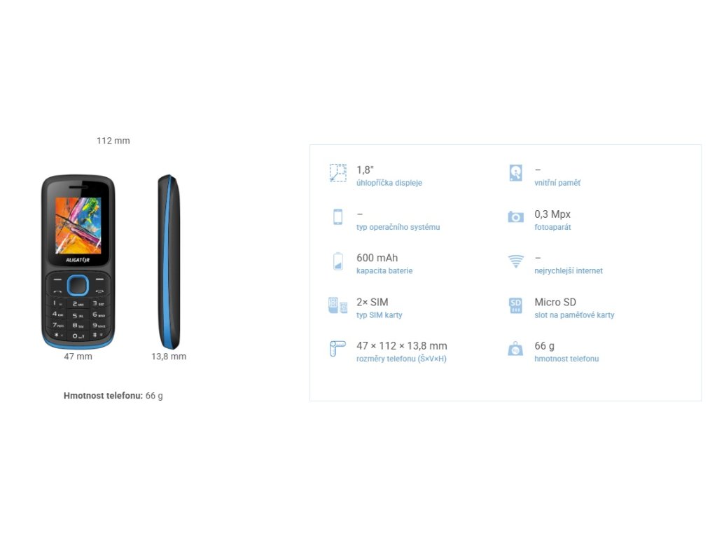 Hledáte-li jednoduchý mobilní telefon, s kterým si snadno zavoláte a napíšete zprávu, tak Aligator D210 může být tou pravou volbou. Jedná se totiž o klasický mobilní telefon s tlačítkovou klávesnicí a výborně čitelným 1,8" displejem. Najdete zde také základní fotoaparát, který stačí na zachycení momentek.