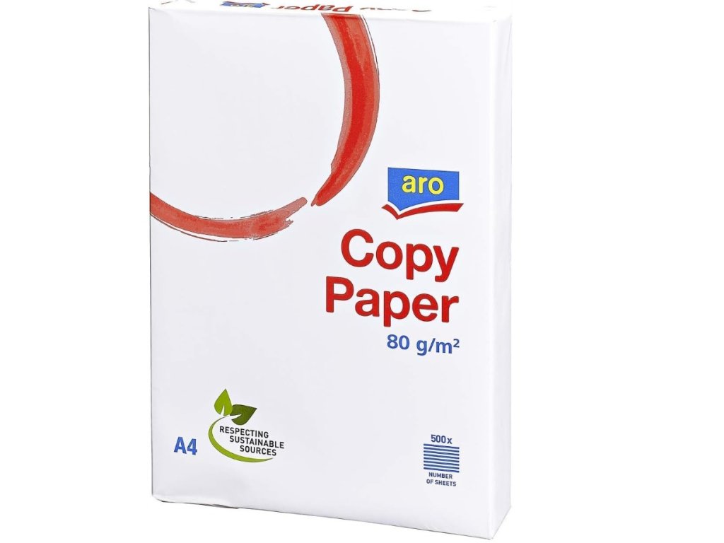 Kvalitní kancelářský papír ARO formátu A4 je ideální pro každodenní tisk, kopírování i psaní. Hodí se do všech běžných typů tiskáren a kopírek. Zajišťuje čistý tisk bez rozmazávání a plynulý průchod tiskovým zařízením.