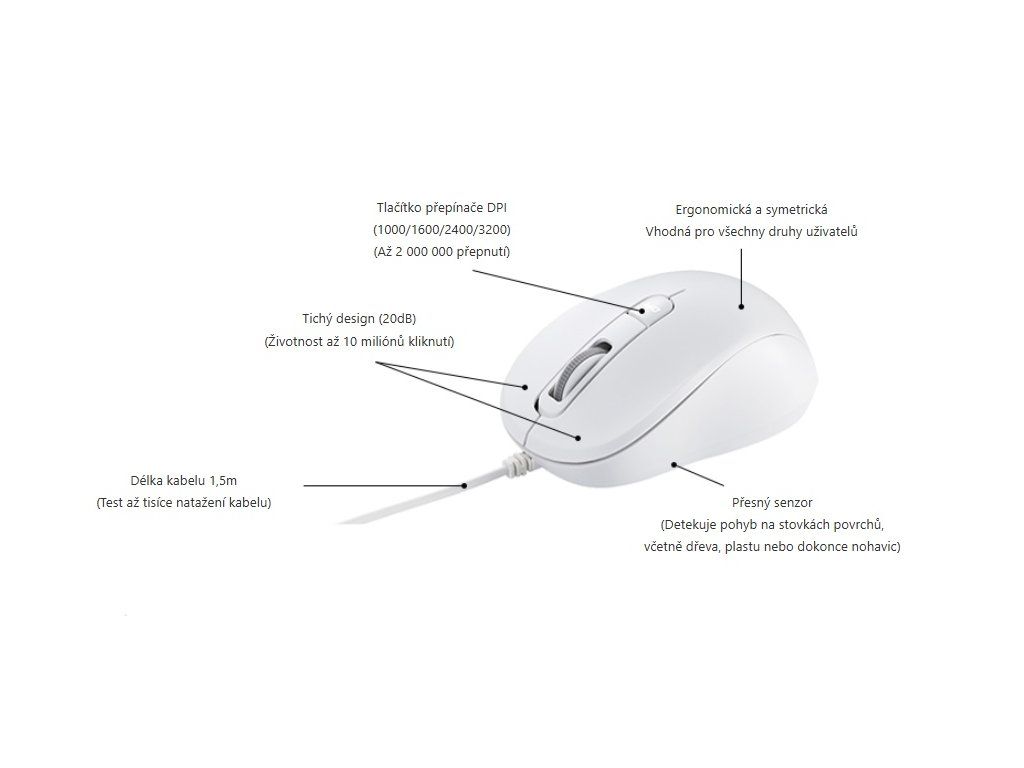 - Citlivost 1000 / 1600 / 2400 / 3200 DPI