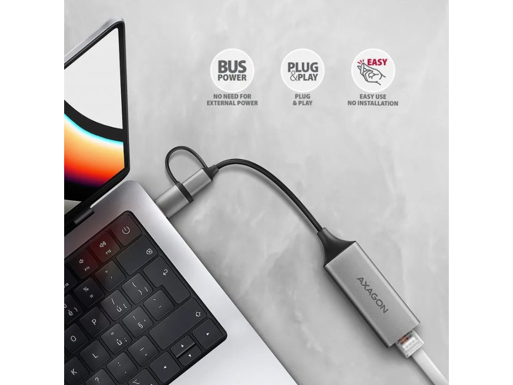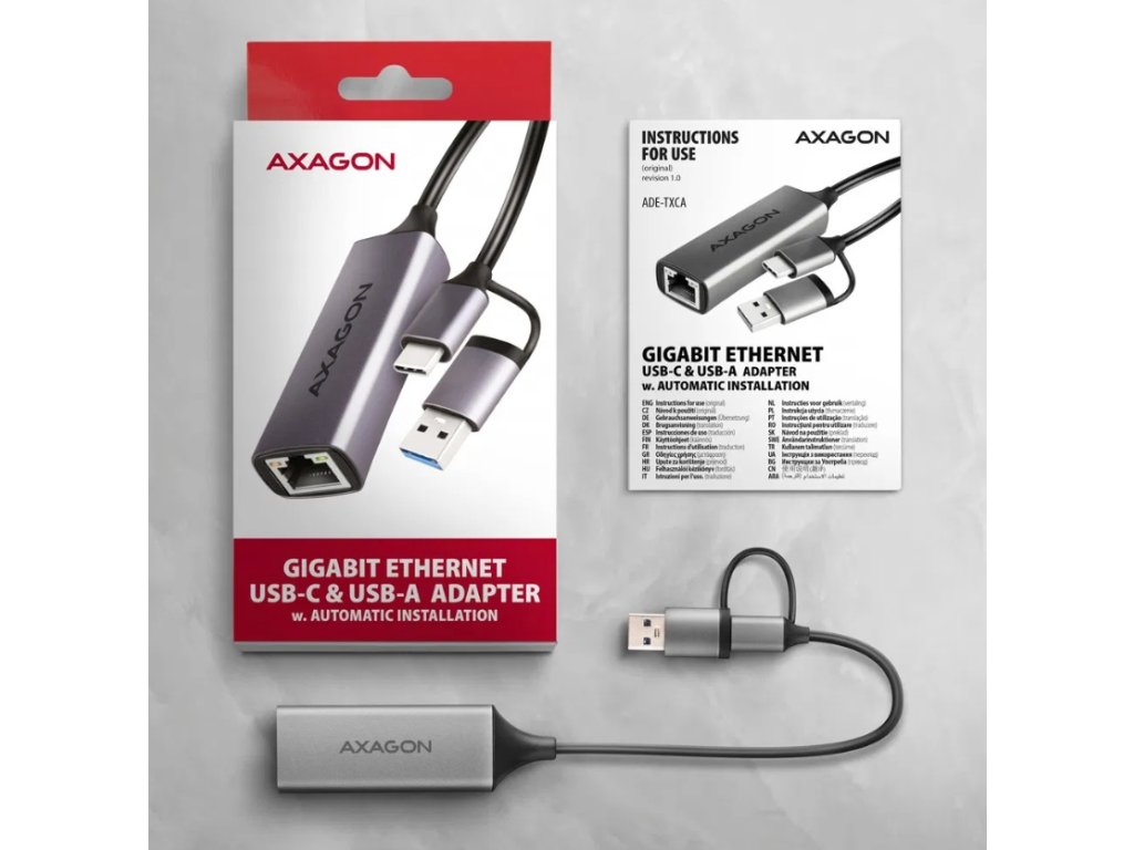 AXAGON ADE-TXCA, Gigabit Ethernet LAN network adapter, USB-C + USB-A 5Gbps
