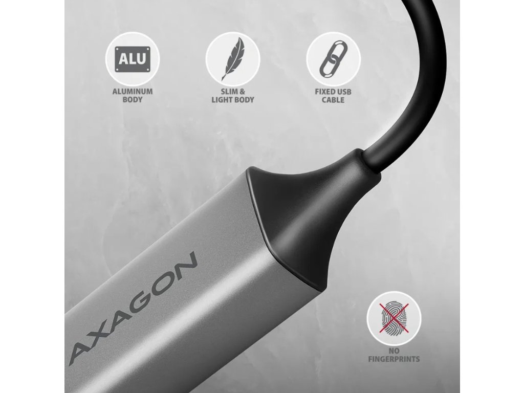 Adaptér na první pohled upoutá svým stylovým designem. Je vytvořený z hliníkového materiálu, který je pevný a jako bonus na sobě nezanechává stopy po otiscích prstů.