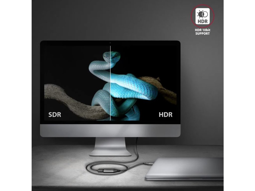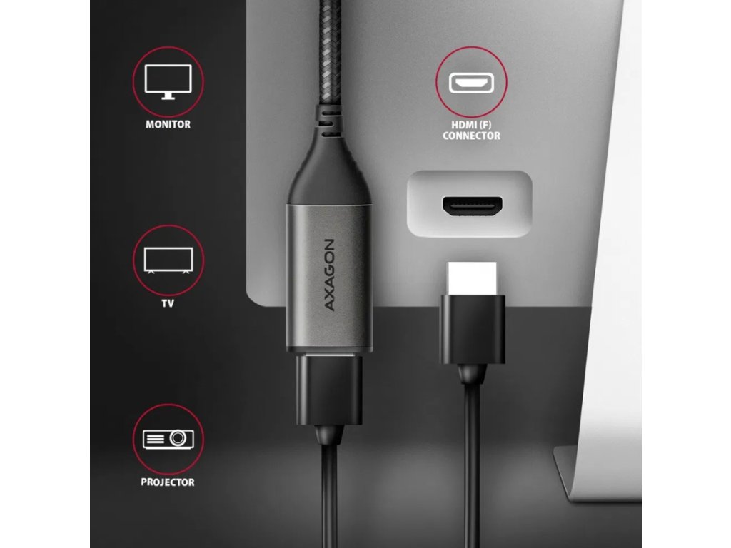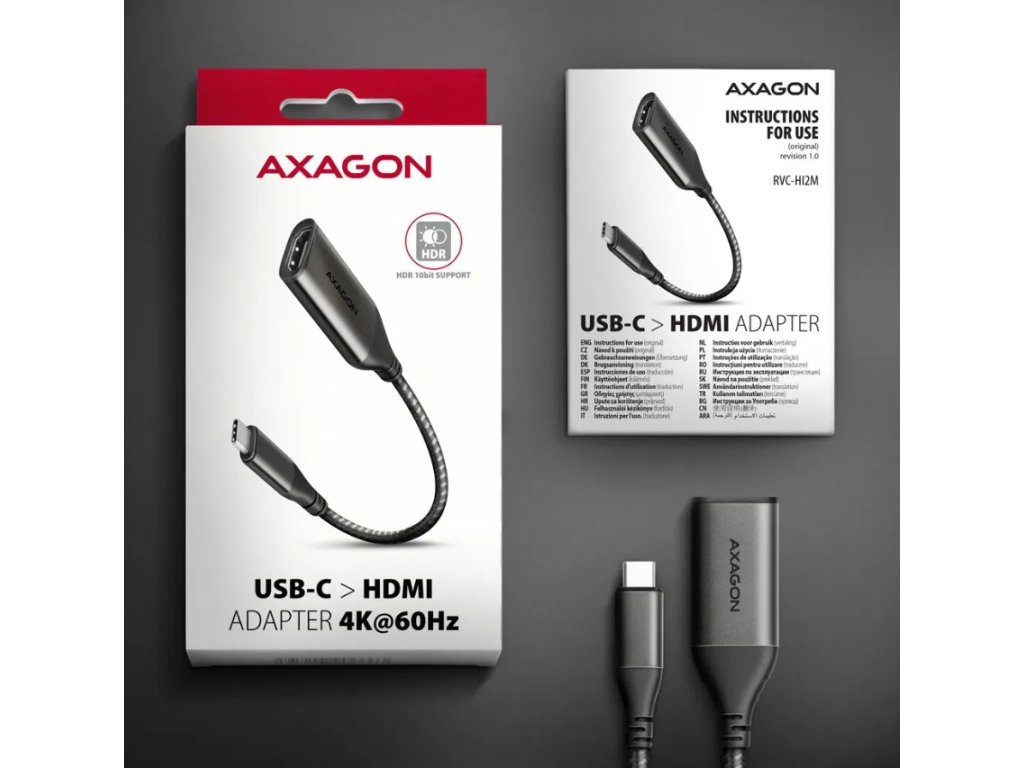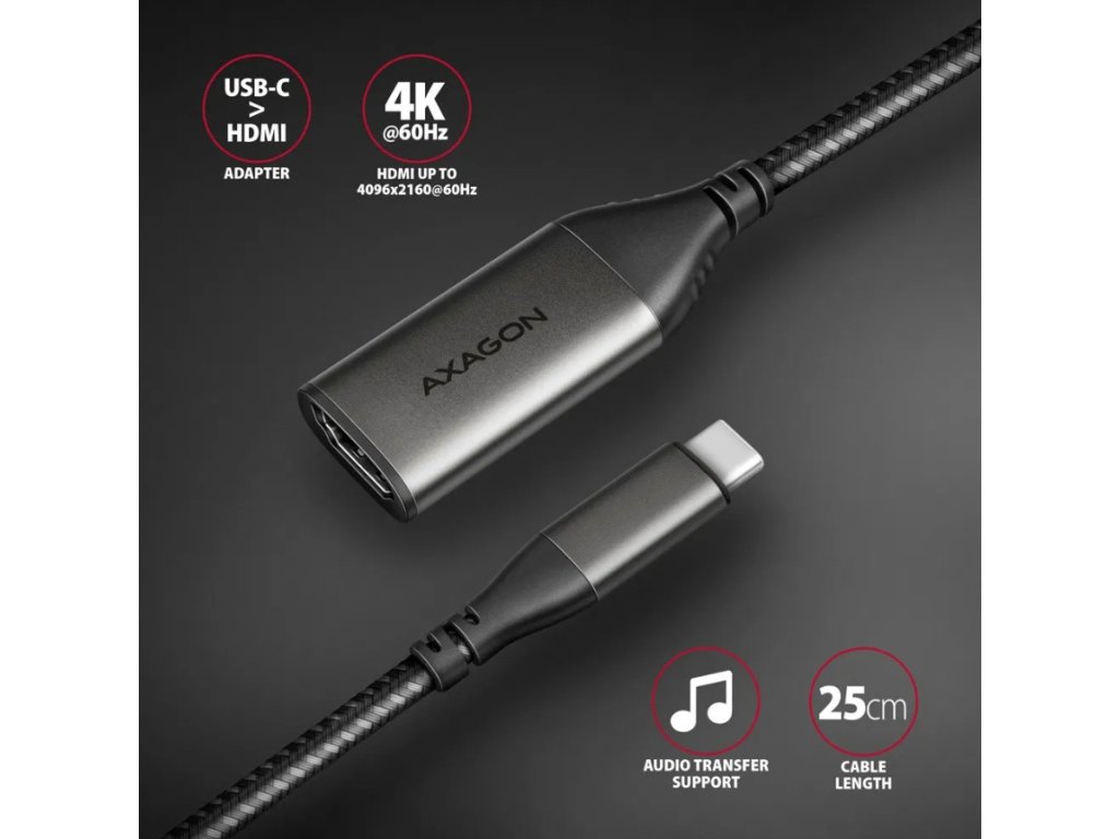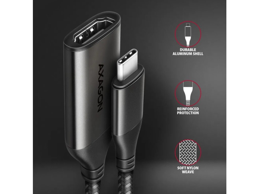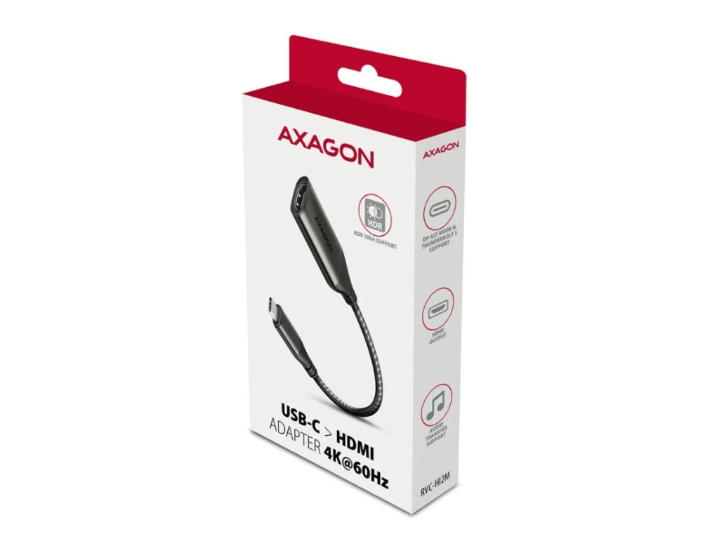 AXAGON RVC-HI2M, USB-C -> HDMI 2.0a adapter, 4K/60Hz HDR10, metal case, braided