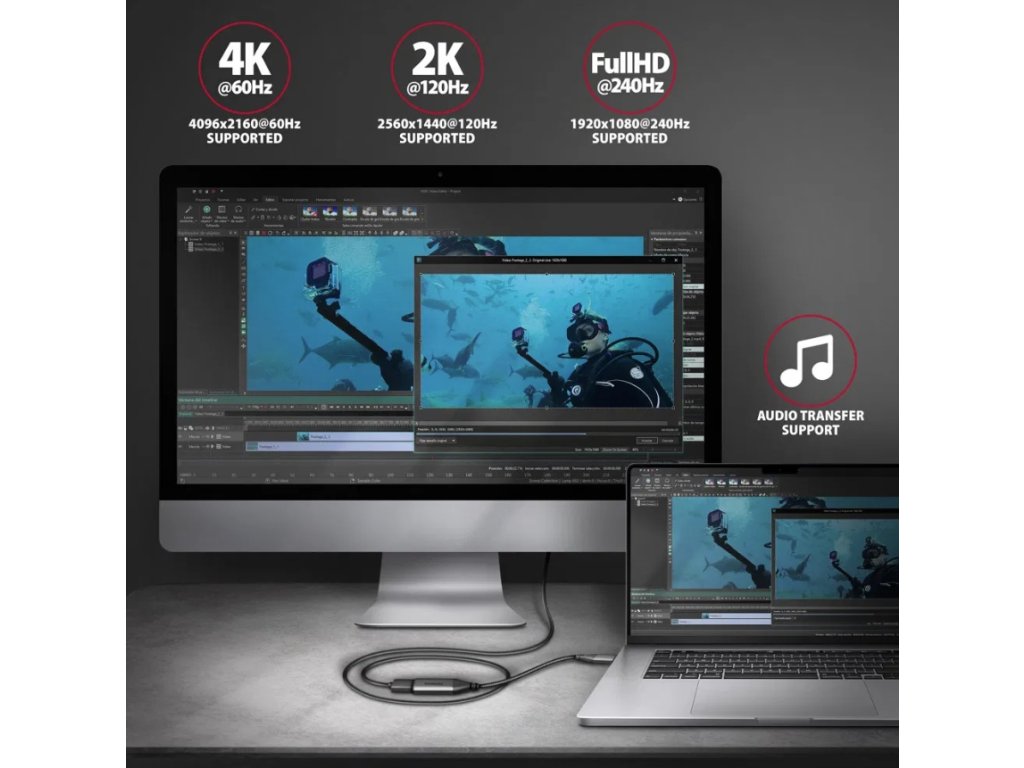 Redukce podporuje obraz až v rozlišení 4K Ultra HD při 60 Hz a je vhodná jak pro běžnou práci, tak i pro multimédia nebo hraní her. Kvalitní zpracování s kovovými koncovkami a opleteným kabelem zajišťuje dlouhou životnost i při častém používání.