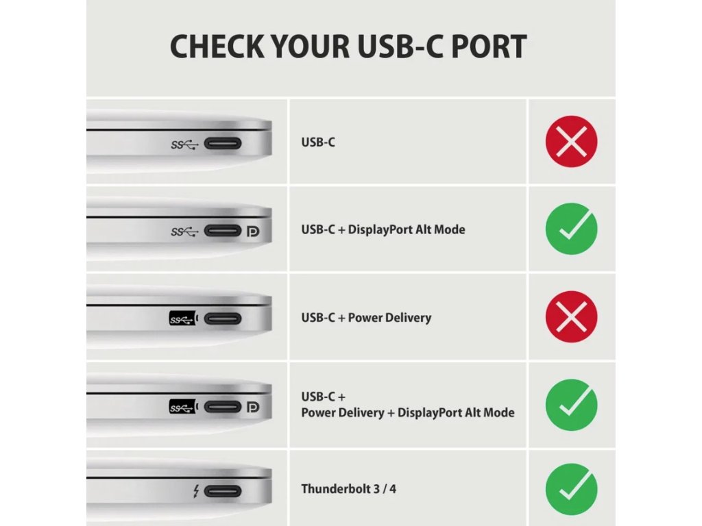 Adaptér je určen výhradně pro převod signálu z USB-C na HDMI, nikoli opačně. Pro správnou funkci je nutné, aby zařízení mělo USB-C port s podporou DisplayPort Alternate Mode (DP Alt Mode) nebo Thunderbolt 3 / 4. Je kompatibilní s notebooky, počítači, mobilními telefony i zařízeními Apple MacBook.