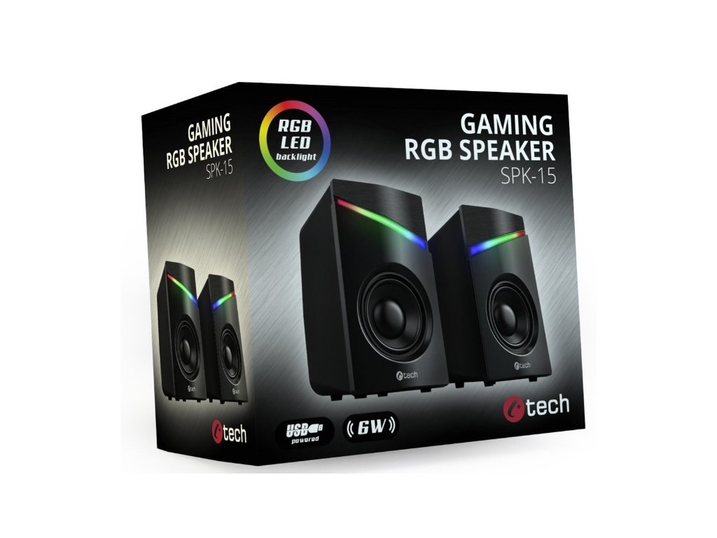 Kompaktní reproduktory C-TECH SPK-15 2.0 efektivně vyřeší ozvučení vaší PC sestavy prostřednictvím přívodního kabelu o délce 1,2 metru. Výsledkem bude kvalitní zvuk s výkonem 6 W a frekvenčním rozsahem od 150 do 20 000 Hz. Reproduktory v černém provedení jsou vyrobeny z odolného plastu. Ovladač hlasitosti se nachází přímo na přívodním kabelu reproduktoru, takže kdykoli můžete ovládat hlasitost bez potíží. Připojení soustavy k zařízení probíhá prostřednictvím USB kabelu a 3,5mm jacku. O vizuální efekty C-TECH SPK-15 se stará atraktivní RGB podsvícení.