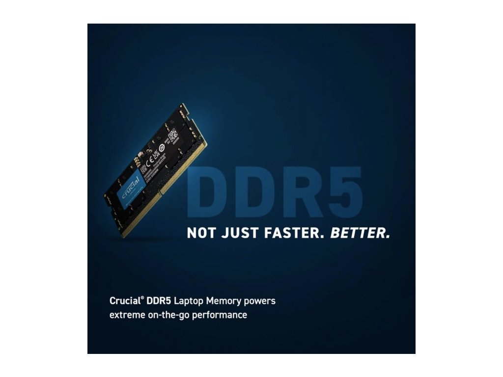 Operační paměť Crucial SO-DIMM 16GB DDR5 5600 MT/s CL46 přináší výrazně vyšší výkon a rychlejší odezvu systému oproti starší generaci DDR4. Díky moderní architektuře DDR5 a vyšší propustnosti paměťové sběrnice dochází ke zkrácení doby načítání aplikací, rychlejším přenosům dat i celkově svižnějšímu chodu zařízení.