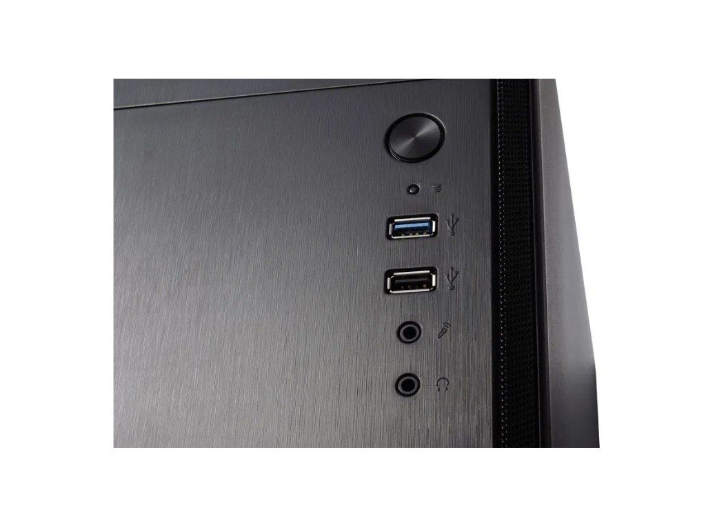 Skříň přináší dostatek prostoru pro grafické karty o maximální délce 350 mm. Kompaktní design je posléze doplněn předním IO panelem, na kterém kromě tlačítka zapínání naleznete po jednom portu USB a dva 3,5mm audio konektory pro připojení headsetu. PC skříň ve verzi s předním 3,5" otvorem vhodným pro disketovou mechaniku nebo čtečku karet. K balení je dodána také originální záslepka, takže otvor lze v případě potřeby snadno zakrýt a zachovat plný vzhled čelního panelu.