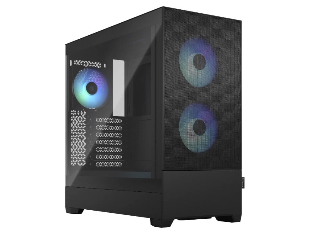 Součástí skříně jsou RGB ventilátory dodané z jiného modelu (FSP). Ventilátory jsou plně funkční a zajišťují správné chlazení, pouze se nejedná o původní ventilátory Fractal Design.