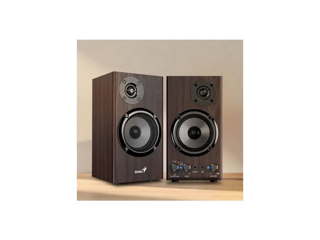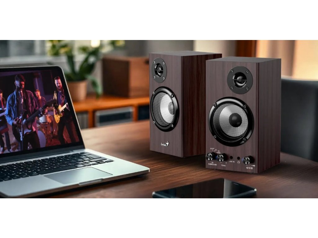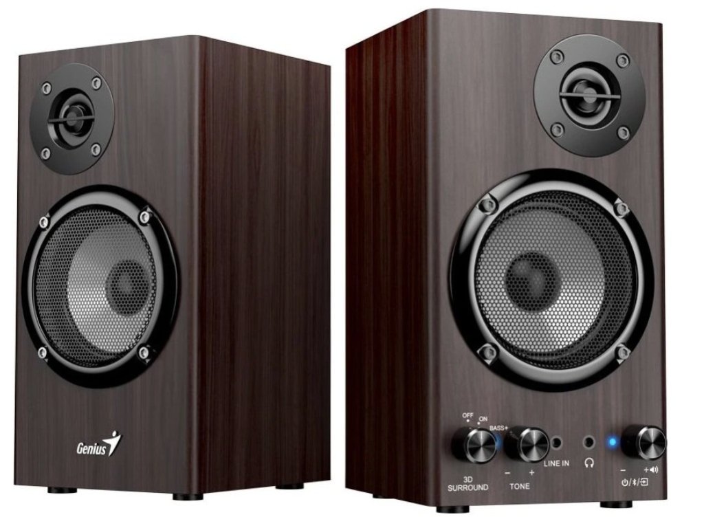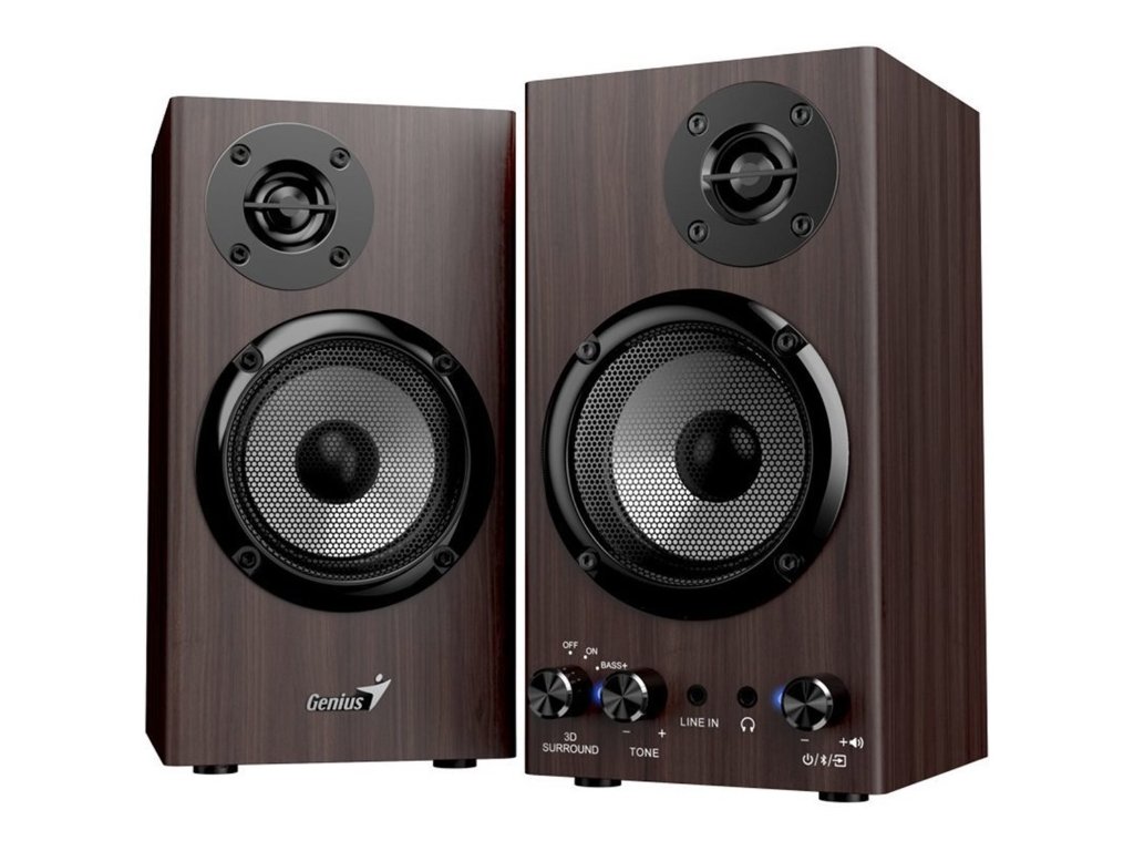 - Reproduktory Genius SP-HF520BT v elegantním dřevěném provedení přináší obousměrný 3D prostorový zvuk se zesílenými basy