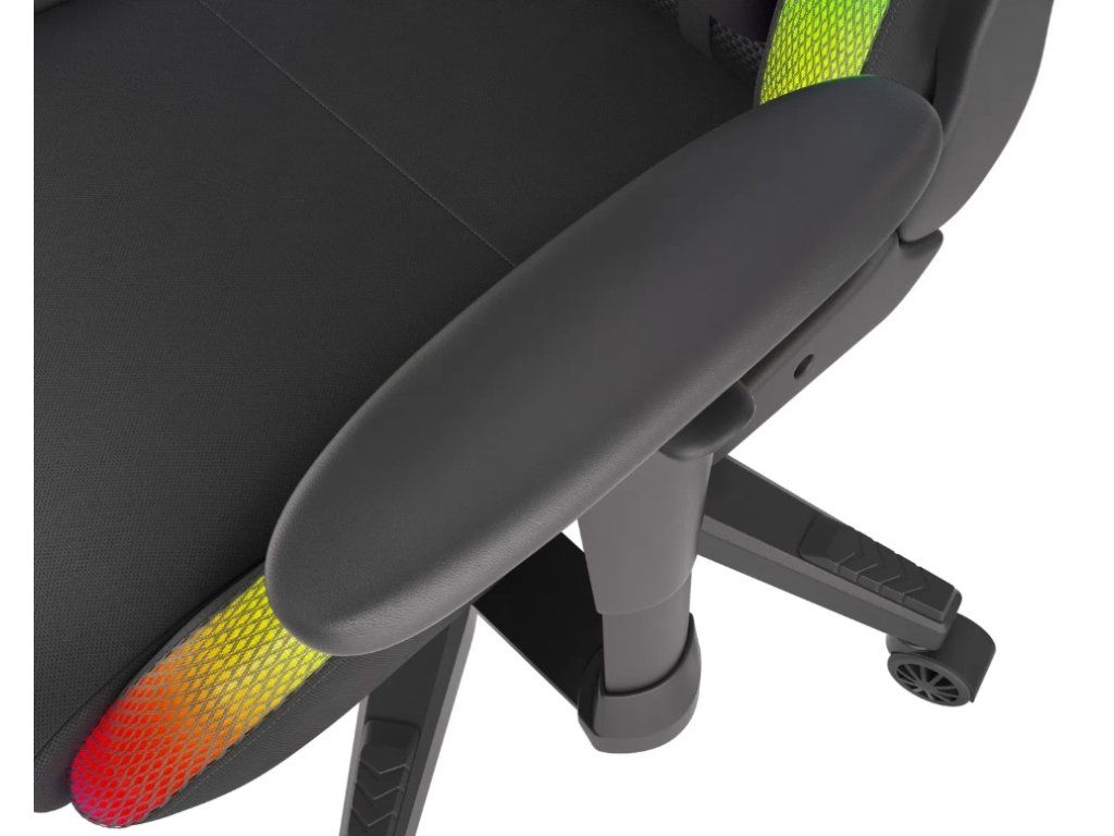 Díky upravené konstrukci je zajištěna vysoká stabilita a ergonomie při sezení. Obě části – sedák i opěrka – nabízejí RGB podsvícení napájené přes USB, které vytvoří dokonalou atmosféru během hraní nebo práce.
