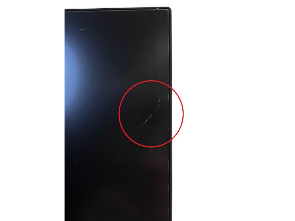 Monitor je plně funkční a důkladně otestovaný. Na pravé straně u horního rohu se nachází kosmetická vada – škrábanec (viz foto). Tato vada nemá žádný vliv na kvalitu obrazu ani funkčnost zařízení a je zohledněna v prodejní ceně.