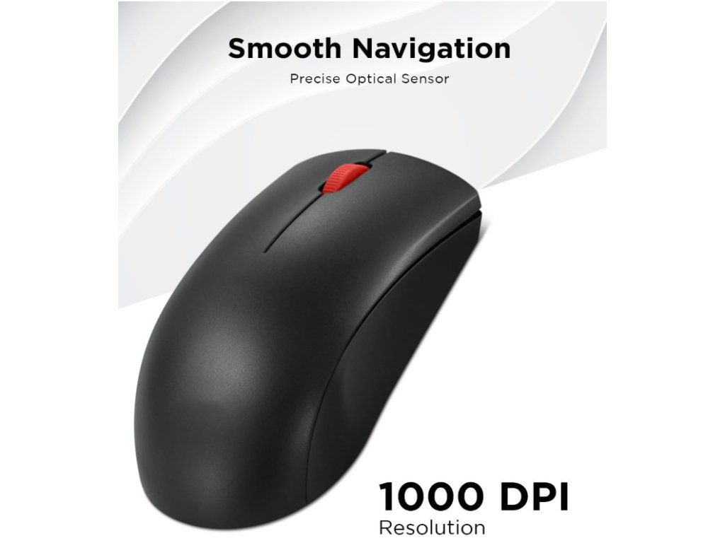 Díky připojení přes 2,4 GHz USB-A přijímač poskytuje stabilní provoz bez zbytečných kabelů. Optický senzor s citlivostí 1000 DPI zajišťuje plynulé a přesné ovládání při běžné práci s počítačem nebo notebookem.