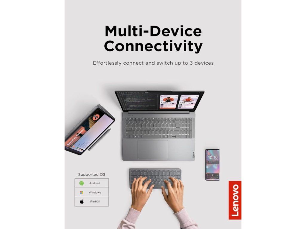 Lenovo Multi-Device Wireless Keyboard je praktická bezdrátová klávesnice navržená pro pohodlné psaní na více zařízeních. Díky podpoře různých operačních systémů ji snadno využijete s počítačem, tabletem i mobilním telefonem.