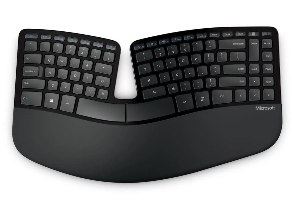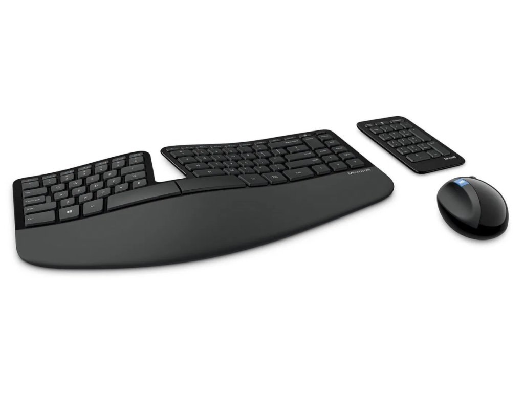 Bezdrátový set klávesnice a myši Microsoft Sculpt Ergonomic Desktop Wireless je navržen pro maximální pohodlí při každodenní práci. Ergonomicky tvarovaná klávesnice s rozděleným rozložením pomáhá udržovat přirozenou polohu zápěstí a předloktí, zatímco samostatný numerický blok poskytuje flexibilitu při uspořádání pracovního prostoru.