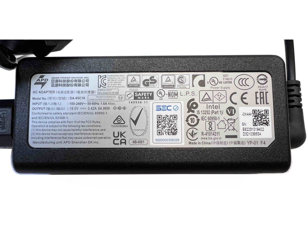 - Výkon - 65 W (19 V × 3,42 A = 64,98 W)