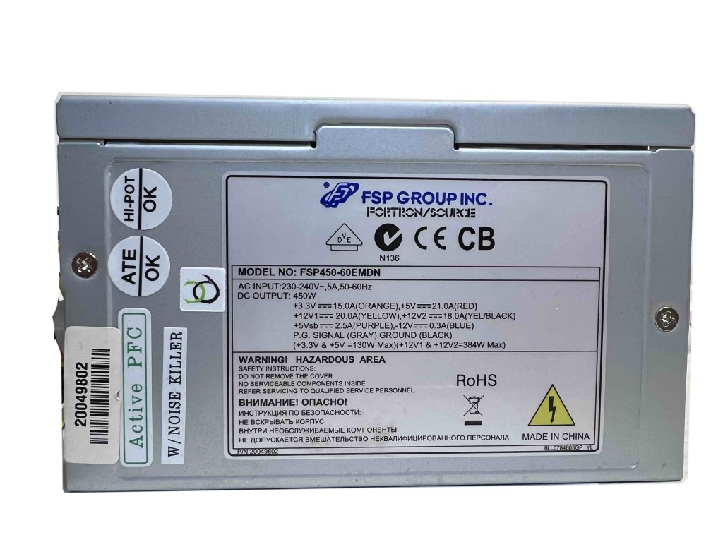 Napájecí zdroj formátu ATX o výkonu 450 W, určený pro kancelářské a pracovní počítače. Zdroj značky FSP (Fortron) je známý svou spolehlivostí a stabilním provozem. Vhodný jako náhrada původního zdroje v sestavách se střední spotřebou.