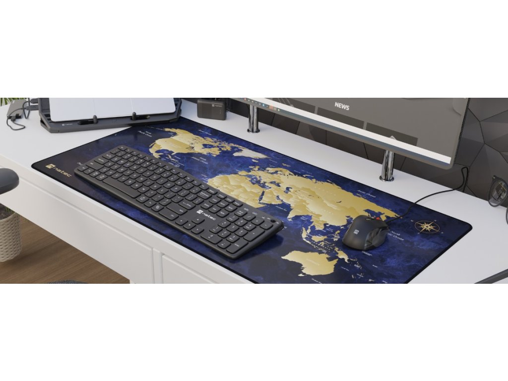 Natec World Deep Blue dokáže i z běžného pracovního prostoru udělat zajímavé a stylové místo. Motiv mapy světa nejen skvěle vypadá, ale zároveň je to i praktický doplněk do kanceláře či domácí pracovny.