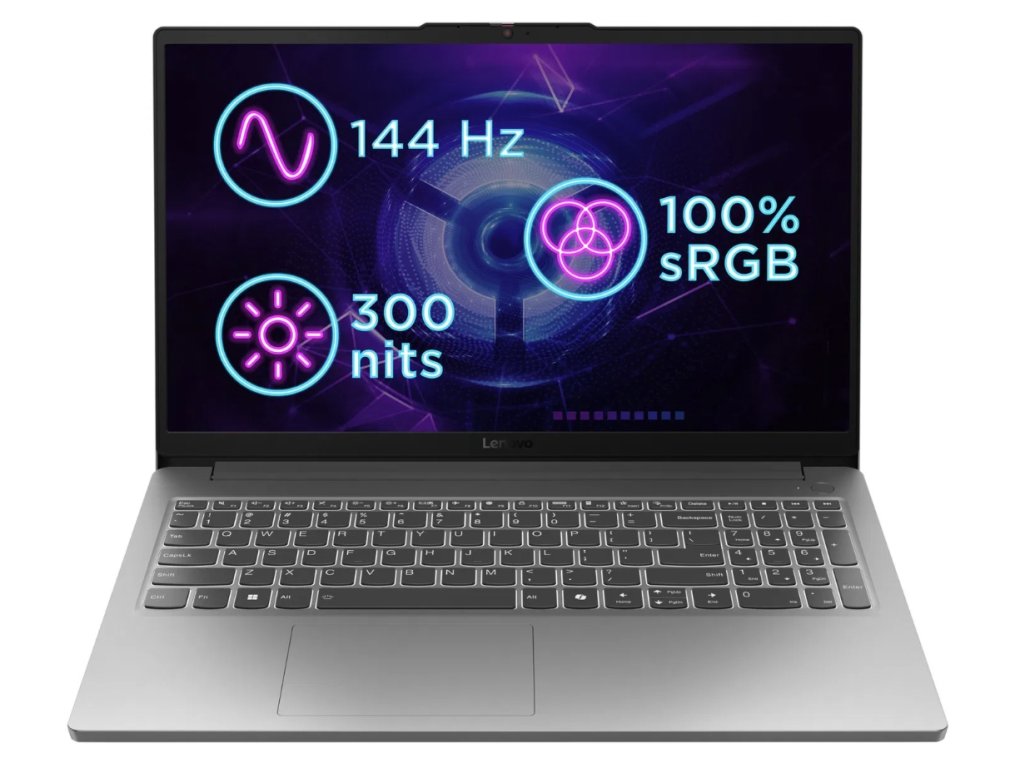 Tento notebook má 15,6" FHD (1920×1080) IPS panel se 144 Hz obnovovací frekvencí, 100 % pokrytím sRGB pro dokonalé podání barev a jasem 300 nitů. Tenké rámečky po čtyřech stranách zvyšují poměr obrazovky k tělu a vytvářejí pohlcující herní zážitek.