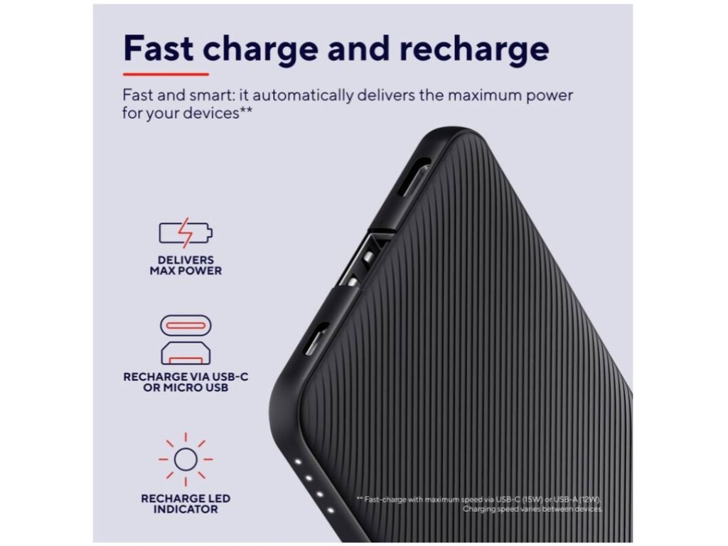 Díky automatickému rozpoznání potřeb vašich zařízení poskytuje maximální výkon přes porty USB-A a USB-C. S možností nabíjet dvě zařízení současně je ideálním pomocníkem pro ty, kteří potřebují mít neustále dostatek energie jak pro telefon, tak i pro tablet.