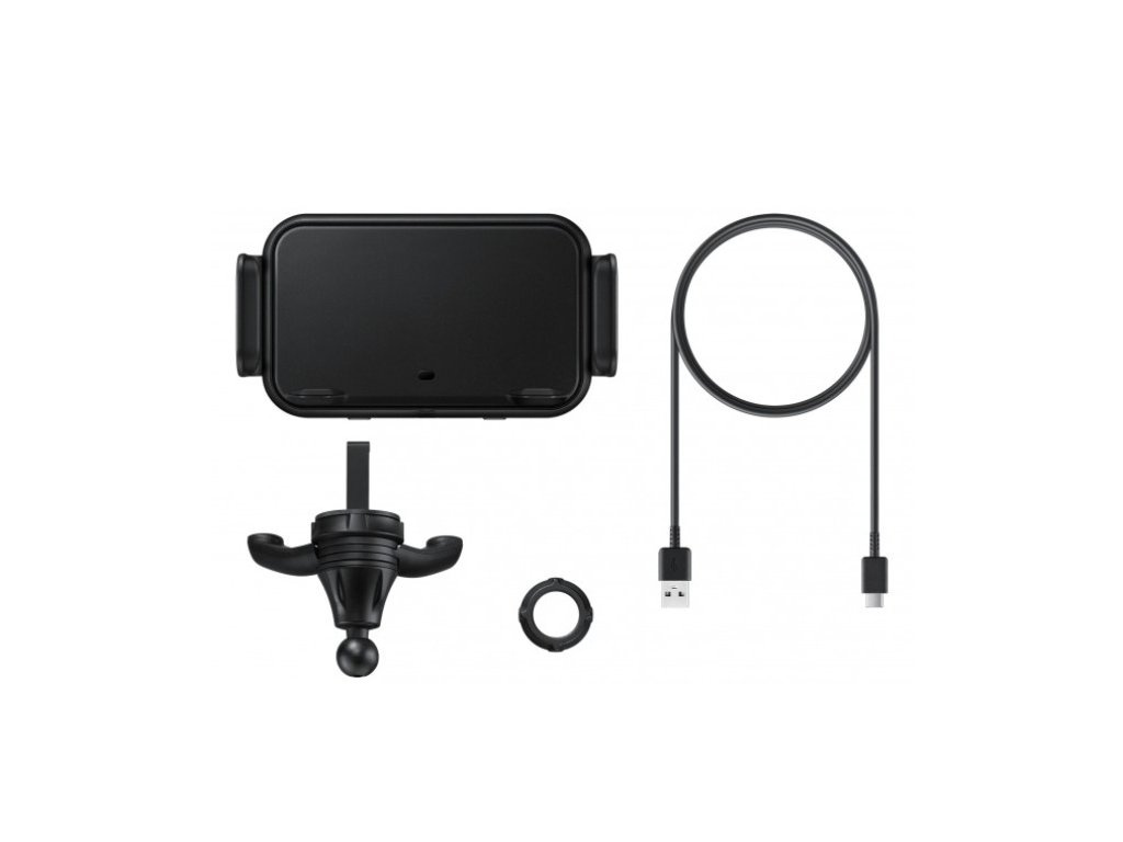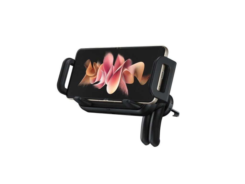 Samsung EP-H5300 je praktický držák na telefon do auta s indukčním bezdrátovým nabíjením. Je určen k uchycení do ventilační mřížky a telefon se do něj upevňuje pomocí svorkového mechanismu, který zajišťuje stabilní držení i během jízdy. Funguje po připojení USB-C kabelu k napájení v automobilu.