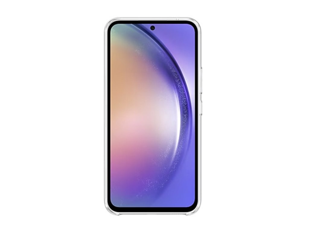 Průhledný zadní kryt určený pro mobilní telefon Samsung Galaxy A54 5G, který nabízí základní ochranu zadní strany a boků zařízení bez zakrytí jeho originálního designu. Kryt je vyroben z lehkého a odolného materiálu, zachovává plný přístup ke konektorům, tlačítkům i fotoaparátu a díky své průhlednosti nechává vyniknout barevné provedení telefonu.