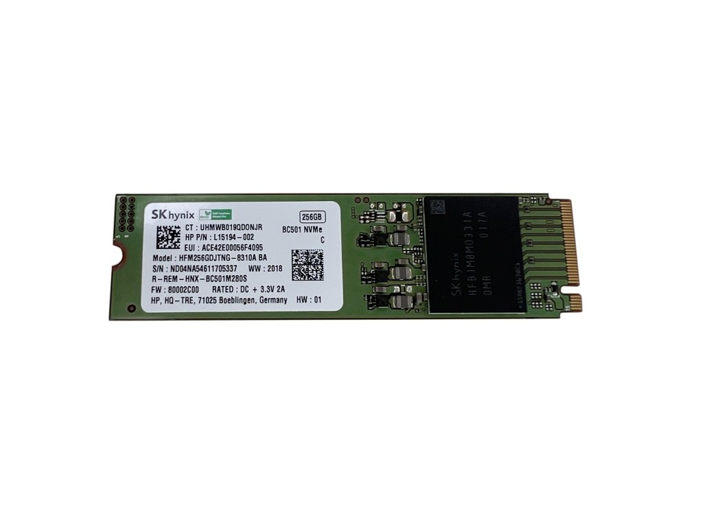SSD disk od SK hynix, Nabízí kapacitu 256 GB a využívá rozhraní PCIe NVMe 3.0 x 2 s podporou protokolu NVMe 1.2.1.