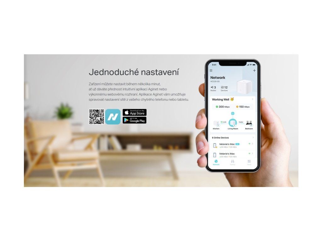 - Snadné nastavení: Nastavte router během několika minut pomocí intuitivní aplikace Aginet.