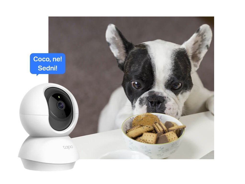 Integrovaný mikrofon s reproduktorem vám umožní komunikovat s osobou, která se nachází před objektivem kamery TP-Link Tapo C200. Snadno můžete komunikovat např. s domácími mazlíčky nebo dětmi.