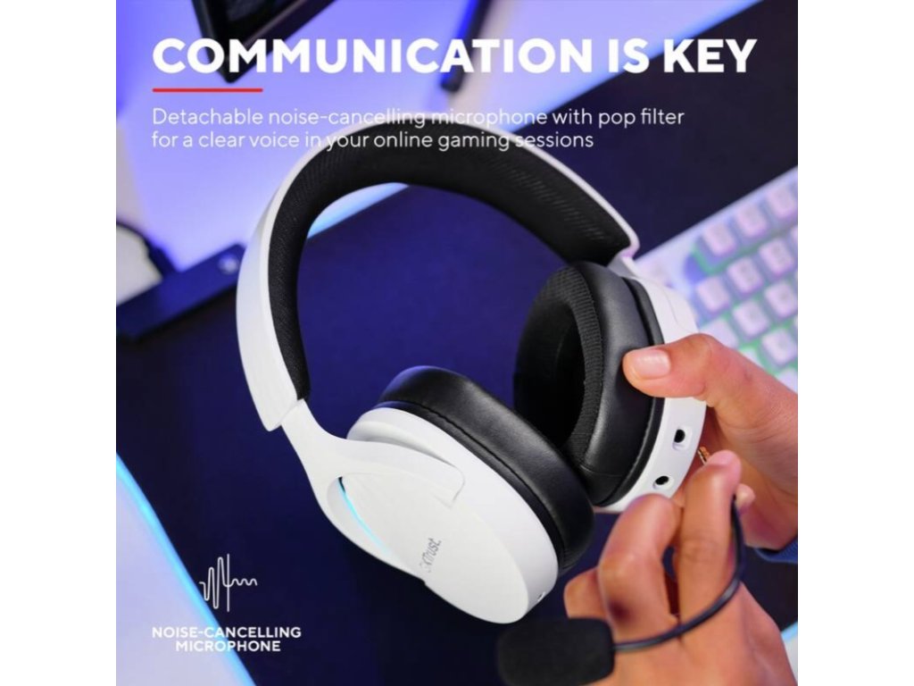 Odnímatelný mikrofon s potlačením šumu zaručí, že vaše pokyny spoluhráčům budou vždy srozumitelné. Uzavřená konstrukce náušníků izoluje zvuk a tlumí okolní hluk. Polstrovaný hlavový oblouk a otočné náušníky přináší maximální komfort. Sluchátka Trust GXT491W FAYZO mají výkonné 50mm měniče a zaručují čistý zvuk s hutnými basy a jasnými výškami. RGB osvětlení dodá vašemu setupu atmosféru. Odpojitelný kabel s 3,5 mm konektorem umožňuje připojení k dalším zařízením.