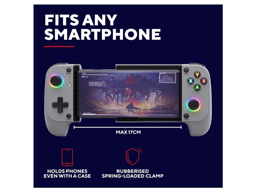 Ovladač je navržen tak, aby z telefonu vytvořil praktickou přenosnou herní konzoli. Díky pružinovému držáku bezpečně uchytí smartphone a poskytne stabilní a pohodlné ovládání při hraní doma, na cestách i ve volném čase.
