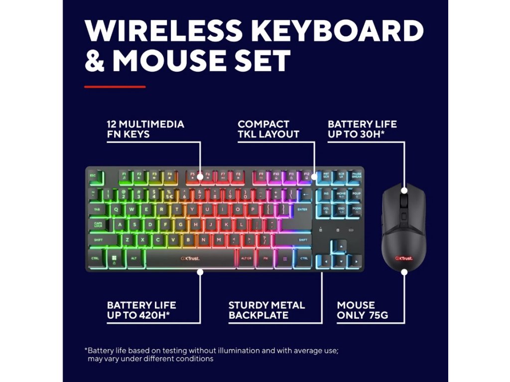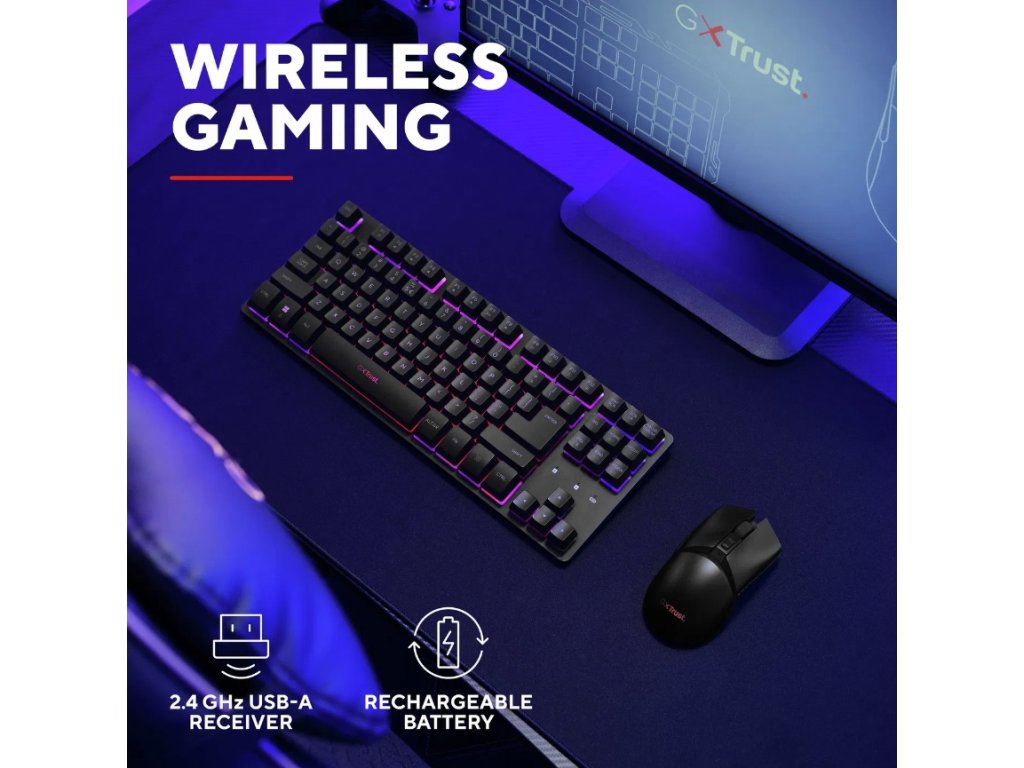 Trust GXT 832 Thado Wireless TKL Keyboard & Mouse Combo – US