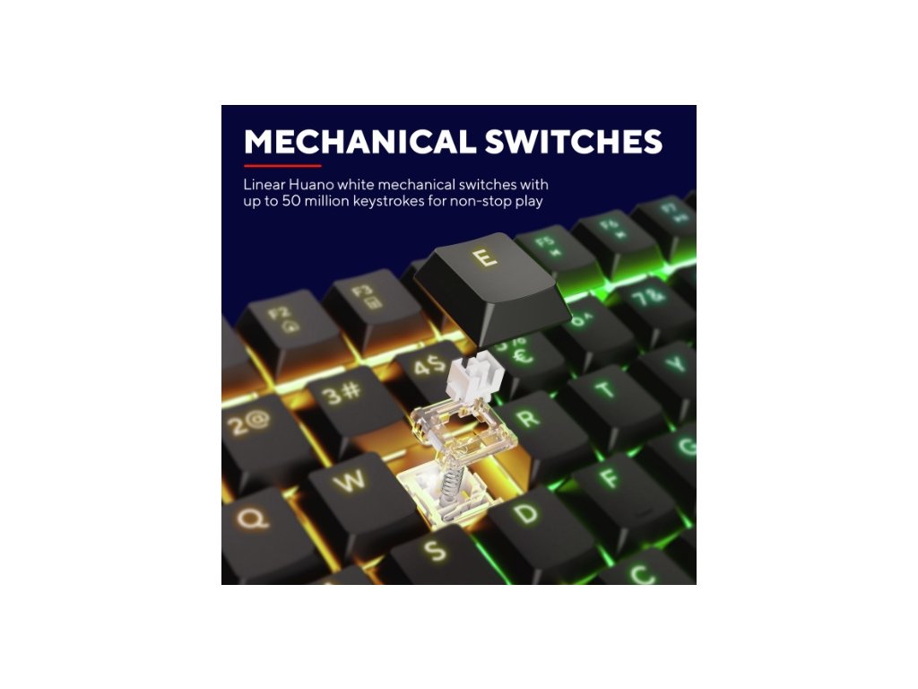 Skvělý pocit z každého stisku a maximální přesnost. Herní klávesnice Trust GXT 868 Torix je osazena lineárními mechanickými spínači Huano White, které zvládnou i extrémní zátěž. Každý stisk je hladký, přesný a okamžitý, což vám umožní dosáhnout maximální přesnosti a rychlosti v každé hře.