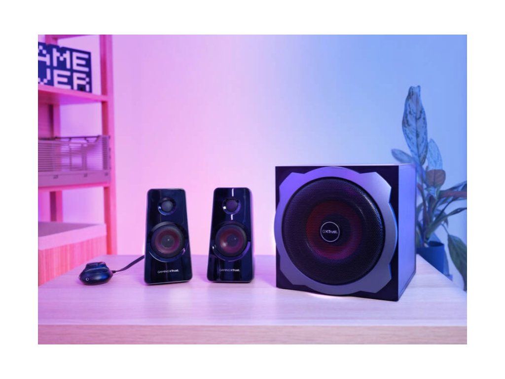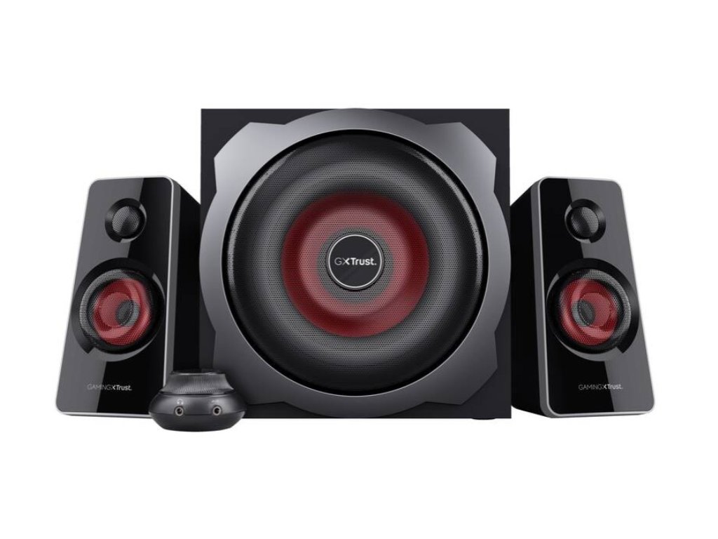 Trust GXT 38 je herní reprosoustava 2.1, určená především pro aktivní počítačové hráče. Sestava si získala dobré jméno díky vysoce kvalitnímu digitálnímu zvuku a hutným basům. Obsahuje analogový vstup pro: PC, notebook, televizor, smartphone nebo tablet a snadno lze přepínat mezi optickým a analogovým vstupem. Potěší i kabelové dálkové ovládání hlasitosti, basů a volby vstupu. Dodaným kabelem lze soustavu připojit kromě počítače také k herním konzolím.